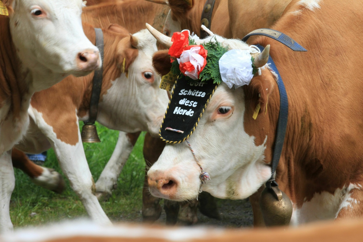 Geschmücktes Jungvieh beim Auftrieb auf die Sommerweiden Ort: Wieden