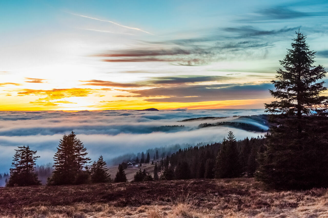 Vom Belchenhaus verlaufen zwei Rundwege um den Belchengipfel. Während der obere Rundweg zum Höchst auf 1.414 m führt, umrunden Sie auf dem unteren Rundweg und in alpinerem Gelände entlang der Baumgrenze den schönsten Berg des Schwarzwaldes. Anschließend lädt die Sonnenterasse des Belchenhauses - sommers wie winters - bei einer Tasse Kaffee und einem frischen Stück Kuchen zum Verweilen ein.