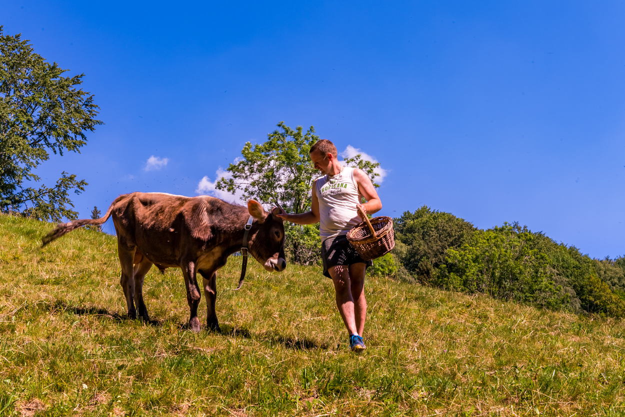 Tierfütterung, Stallarbeit, Heu holen und Heu machen, Grünfutter holen, Kälbchen tränken, Ziegen streicheln, Zusehen beim Backen von Brot und Hefezopf im Holzbackofen.