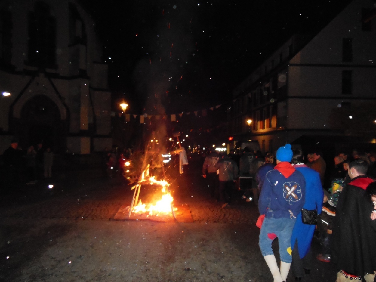 Fasnachtsverbrennung mit traditionellem Fackellauf hinter der Ledergasse. Der Abmarsch des Fackellaufs ist um 18 Uhr beim Salon Brunhilde.