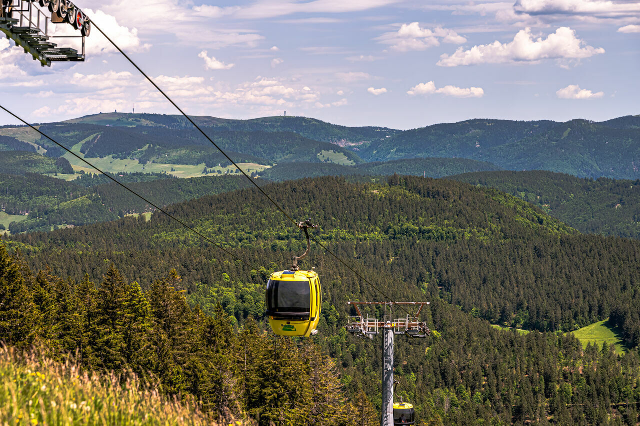 Der majestätische Belchen (1414 m) ist der schönste Berg im Schwarzwald und bietet bei gutem Wetter eine atemberaubende Fernsicht. Von der Schweizer Alpenkette im Süden schweift der Blick über das Wiesental, die Rheinebene und Freiburg hinüber zum benachbarten Feldberg. Wer den Berg nicht erwandern will, kann seit 2001 ganz gemütlich mit der Belchenbahn hinauf in Richtung Gipfel schweben. Mit einer Fahrgeschwindigkeit von 5 m/s erreichen Sie in nur vier Fahrminuten die Bergstation der Belchen Seilbahn, die sich direkt neben dem Belchenhaus befindet. Im Nu sind die 263 m Höhenunterschied von der Talstation (1.100 m) bis an die Bergstation (1.363 m) überwunden.
